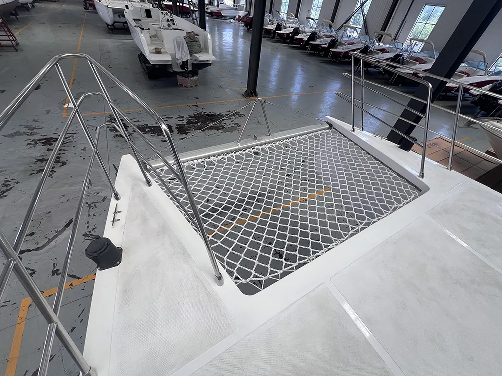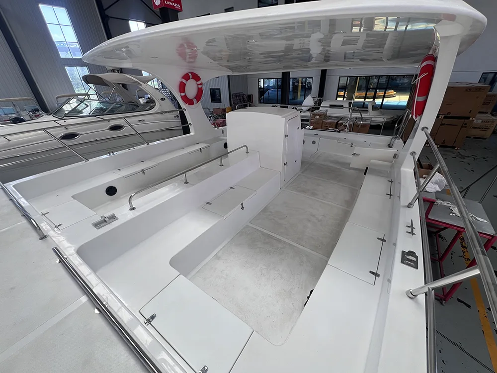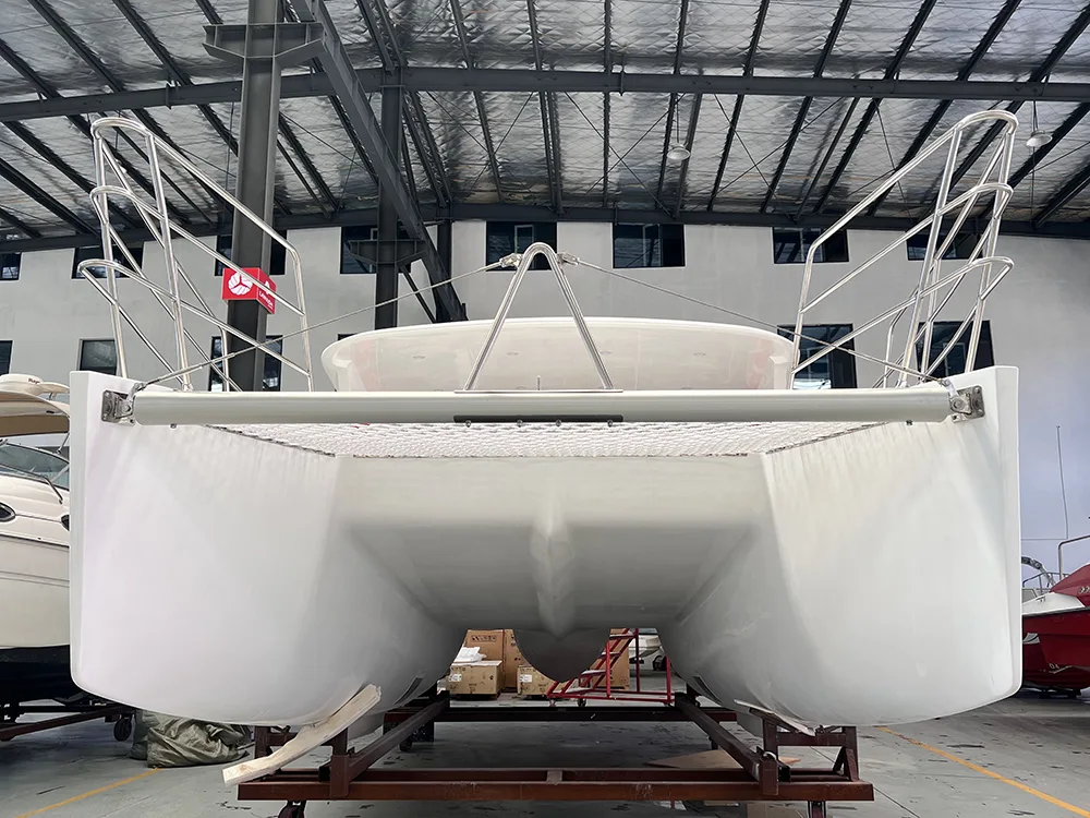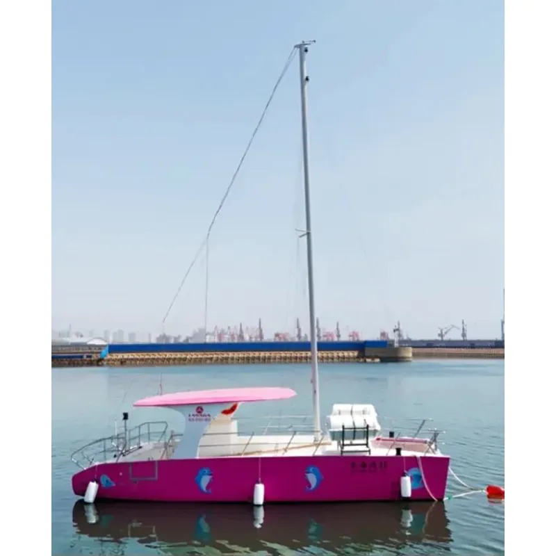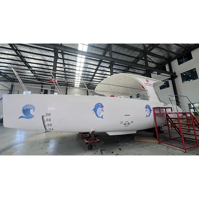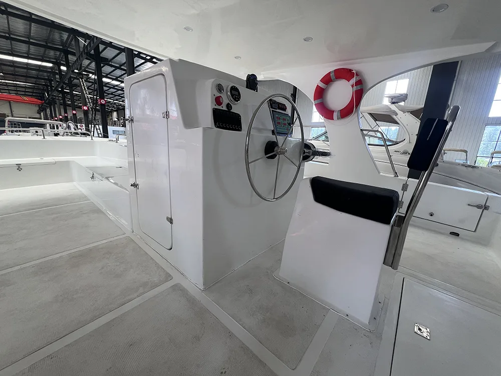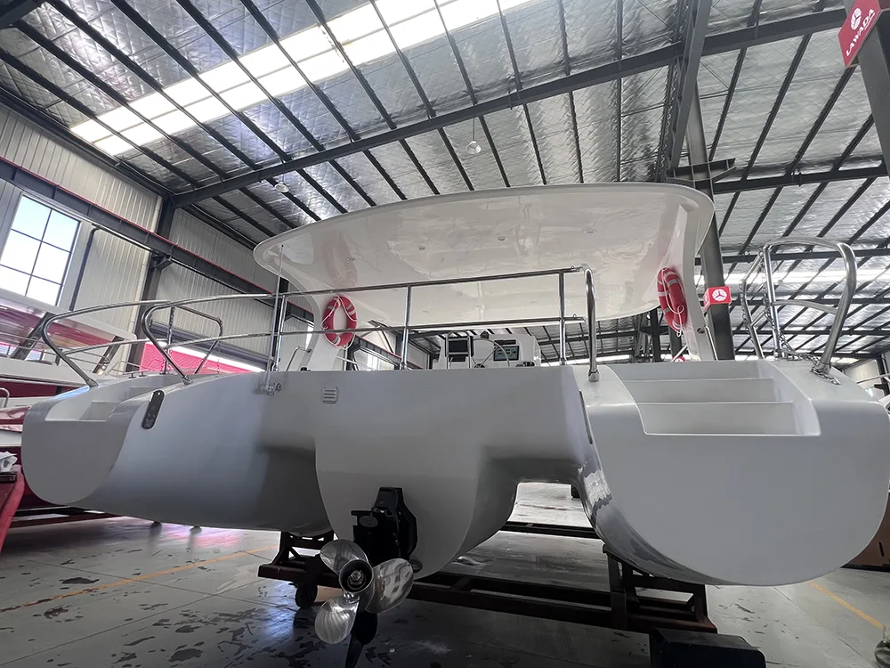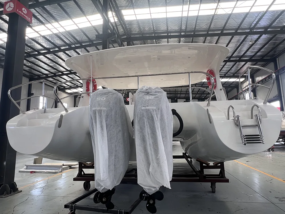 Қонунада®30 фут катамаранаи тиҷоратӣ метавонад бо муҳаррики ҳавопаймои дуртар муҷаҳҳаз карда шавад